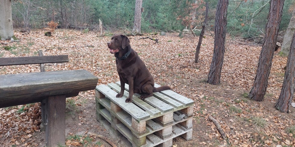 Apollo ist der braune Labrador Retriever meiner Schwester. Er ist am 06.01.2016 geboren und somit bereits ein junggebliebener Senior. Sein Vater entstammt der Arbeitslinie und seine Mutter der Showlinie. Dies spiegelt sich nicht nur in seinem Erscheinungsbild wieder, sondern auch in seinem Charakter. Er ist sehr motiviert und arbeitswillig, er langweilt sich sehr schnell und denkt sich dann gerne eigene Beschäftigungen aus, jedoch besitzt er auch einen ordentlichen Dickkopf, wenn er in einer Aufgabe keinen Sinn erkennt. Da er erst mit sechs Monaten zu uns kam, brachte er ein paar Baustellen mit. Denn er war sehr laut und verhielt sich gegenüber anderen Hunden als der typische Leinenpöbler. Sein Vorbesitzer hat nicht mit ihm gearbeitet und war maximal 10 Minuten am Tag mit ihm draußen, die restliche Zeit verbrachte er im Garten, bis die ersten Familienmitglieder nachhause kamen. Dementsprechend war er mit sechs Monaten noch nicht stubenrein, als er bei uns ankam. Es dauerte zirka 1 Jahr bis meine Schwester und ich seine großen Baustellen, mit viel Training und Geduld ausgebügelt hatten. Nun ist er nicht nur verträglich mit Hunden, sondern ein absolut souveräner Testhund, der geduldig bleibt, selbst wenn er angebellt und angeknurrt wird. Da er leider mittlerweile Arthrose und Spondylose im Rücken hat, sind wir aktuell dabei ihn an einen Hundebuggy zu gewöhnen, damit er bei längeren Ausflügen trotzdem mitkommen kann und sich dann in den Buggy legt, wenn es ihm zu viel wird. So bleibt er uns hoffentlich noch lange Fit und Gesund.
